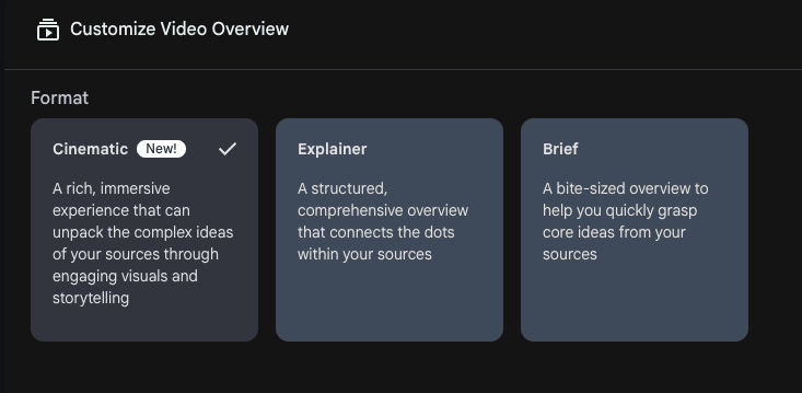 This month they drop cinematic video overviews. This is going to turn your documents, PDFs, web links, whatever you upload to it, into an immersive AI animated and narrated explainer video.