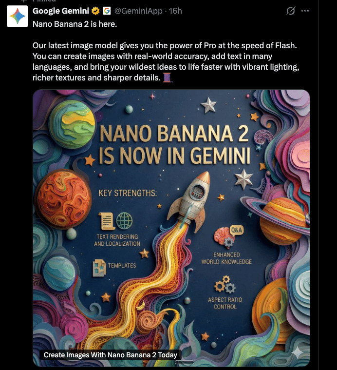 Here’s what improved: subject consistency across multiple images (up to 5 subjects stay consistent), 4K resolution, and it’s fast... like, sub-second generation fast. It’s now the default image model inside Gemini.